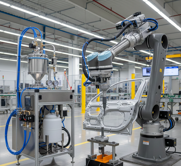 Robotic dispensing encompasses a wide range of industrial applications, including spraying systems, liquid pouring, small-part dispensing, and container filling. Teemer Tech Pvt. Ltd. offers advanced robotic dispensing and robotic spraying solutions in collaboration with leading dispensing system manufacturers available in the market. We have a proven track record in robotic paint spraying, particularly within the automotive industry, delivering reliable, high-precision automation solutions tailored to customer requirements.