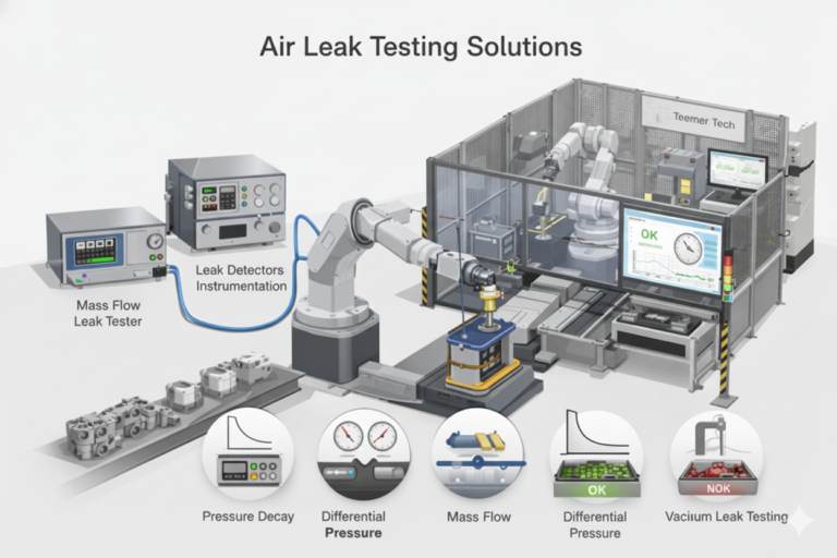 These systems eliminate manual testing variability, reduce cycle time, and prevent quality bottlenecks while ensuring 100% inspection capability. Teemer Tech air leak testing solutions are scalable, flexible, and fully compatible with Industry 4.0 and IoT-enabled manufacturing environments.