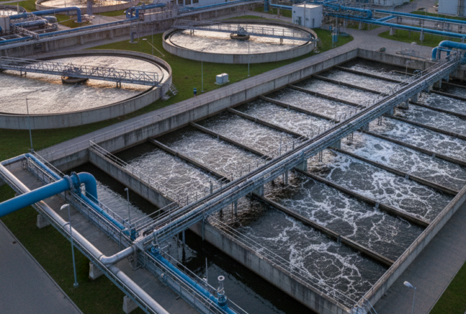 Engineered systems for treating water from domestic and industrial sources.